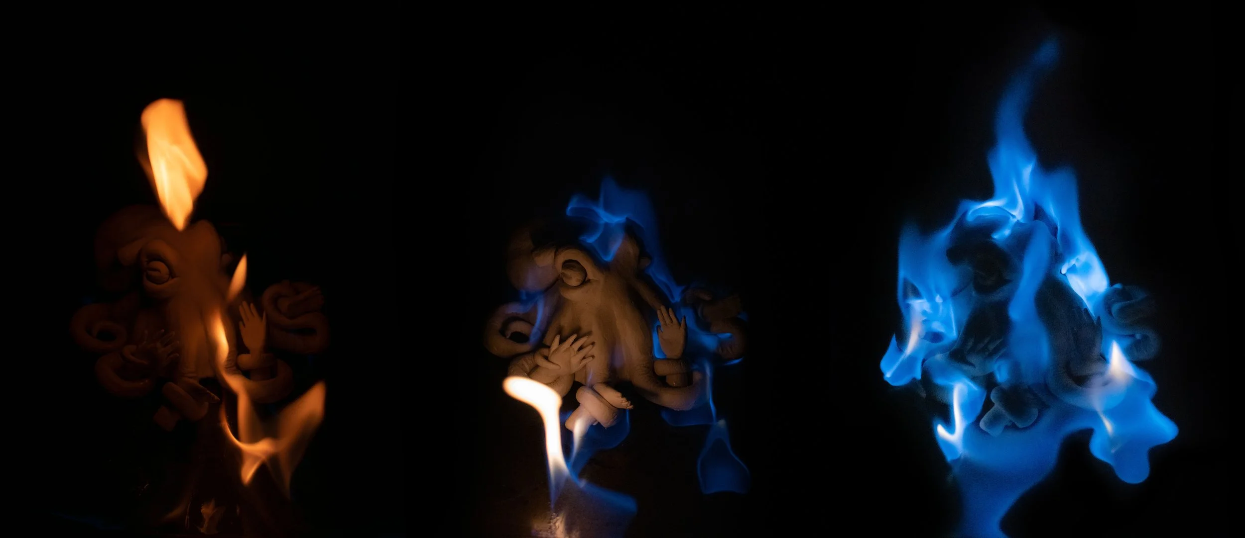 "Get Yourself Together" showcases the present state (clay), the destruction, and the rebirth of my octopus sculpture (masking tape and cardboard). The series serves as a chilling reminder of the urgency that oceanic conservation holds. Holding human arms and legs, the octopus almost shakes the viewer to confront our dire circumstances — if our oceans fall, they will bring humanity down with them. I chose the octopus as my subject because octopi are extremely intelligent, soulful creatures, and I carefully sculpted its head to resemble an anatomical human heart, emphasizing the link between humanity and marine life. Through this sequence of images, I wanted to bring to light the tragic future that lies ahead for our oceans if people fail to take action.